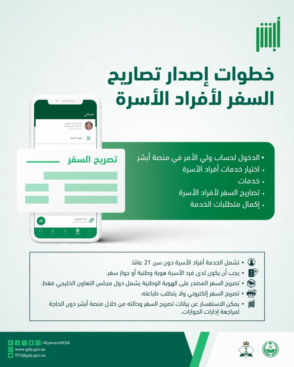 ما أهمية خدمة إصدار أو إلغاء تصريح السفر لأفراد الأسرة عبر أبشر؟