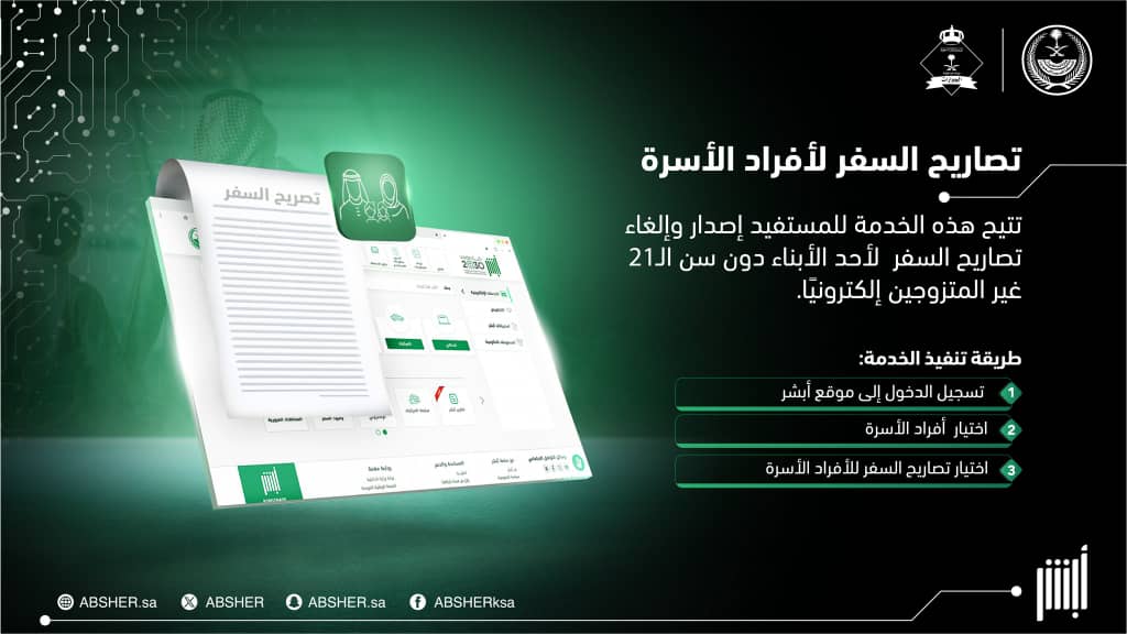 ما هي خطوات إصدار وإلغاء تصريح السفر لأفراد الأسرة عبر أبشر؟